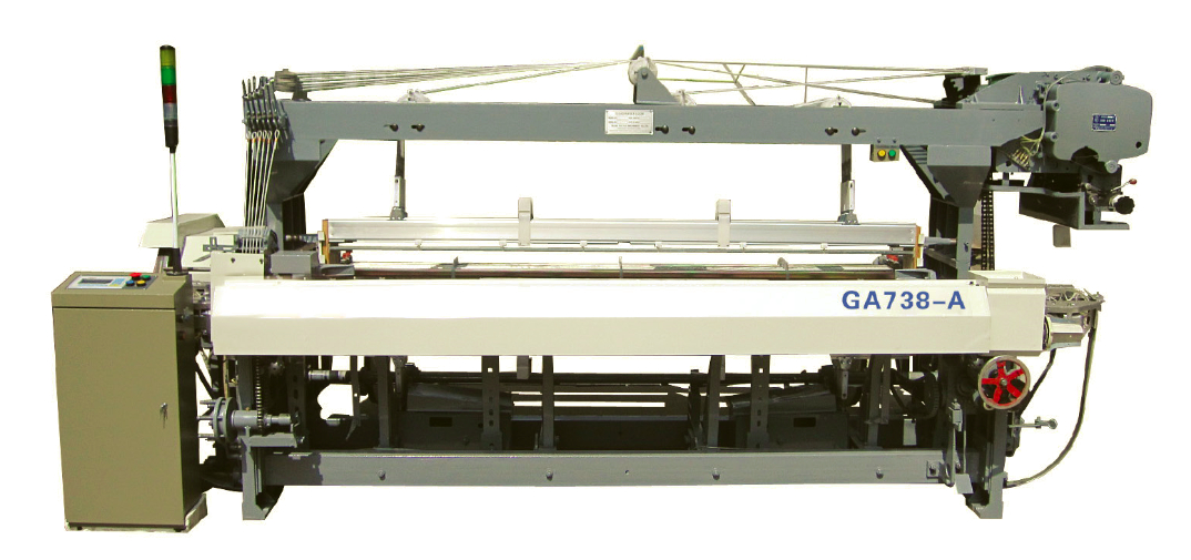 Model GA738-A rapier loom is improved by GA788 basis, 6 color weft selector, single weft color change, can be equipped with dobby, jacquard, and automatic pick finding device. Thus the production can be increased, product quality can be improved, and a wide range of applications, improve the working environment, reducing the labor intensity, widely applicable by small and medium-sized textile factory.This machine is suitable for weaving of natural fibers, chemical fiber, blended yarn and other fabrics.